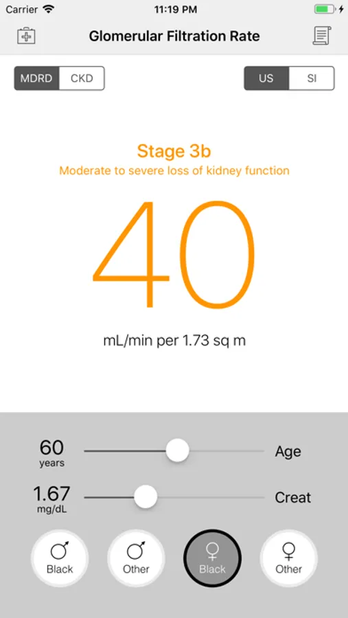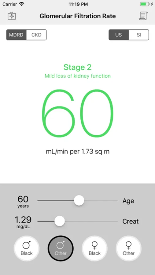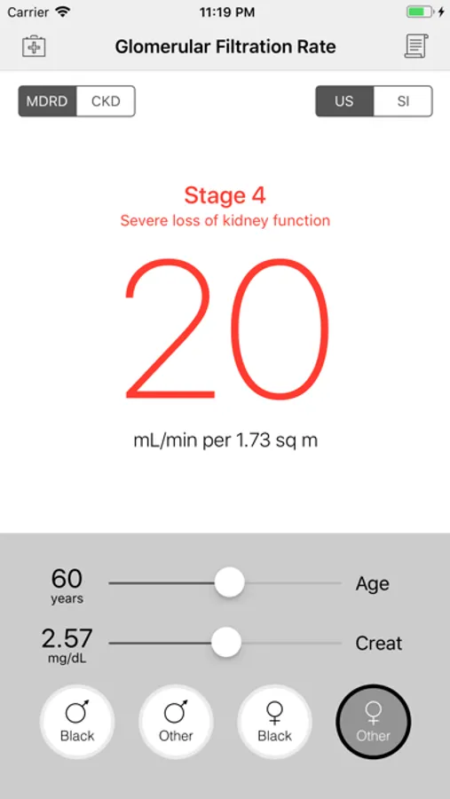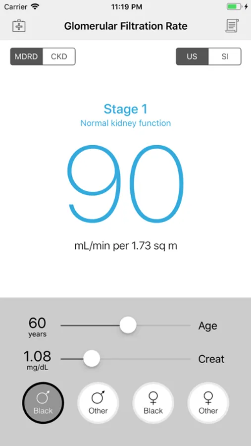 Glomerular Filtration Rate Calculator is a simple app that provides medical professionals with an elegant, highly efficient, and easy way to estimate glomerular filtration rate using the: