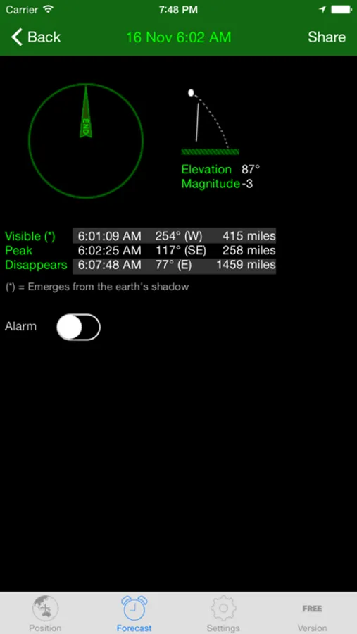 ISS Spotter makes it easy for you to spot the International Space Station (ISS). You can see the forecast of visible passes and set alarms to be on time to view the ISS. The built in compass and tools will allow you to spot the ISS easily.