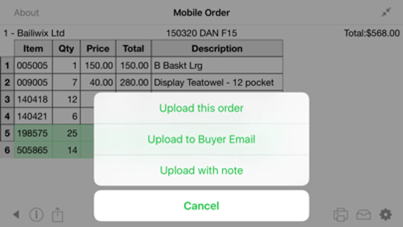Send orders to email address, FTP sites, or post data directly to MySQL database - all with a single button press on the mobile.