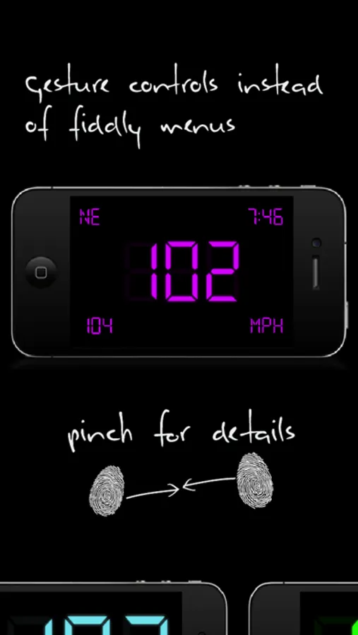SpeedGlow cuts the usual distractions and gimmics of common speedometer apps, and shows just your speed with a beautiful glowing LCD font.