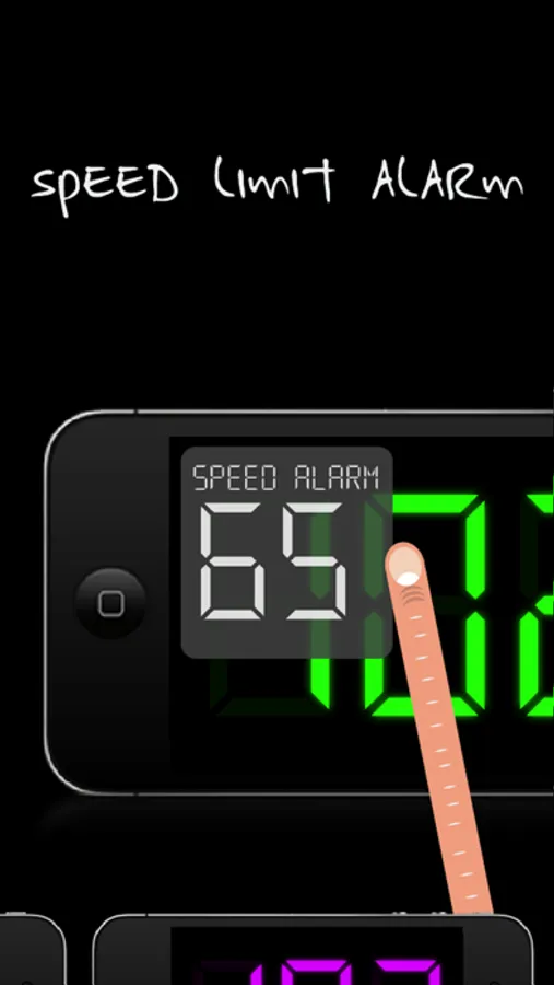 The easiest possible way to set your speed limit alarm: just touch the screen anywhere and drag vertically.