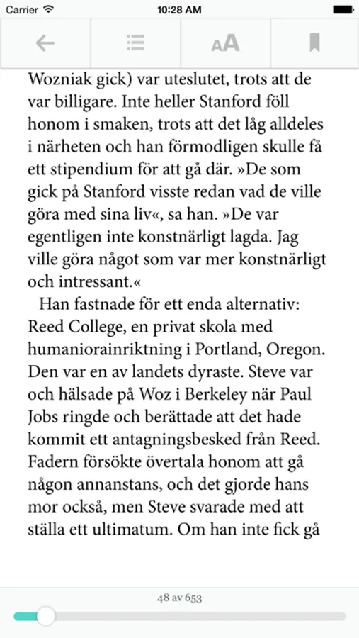 - Anpassa din läsupplevelse: välj textstorlek, typsnitt och bakgrund - vit, sepia, nattläge