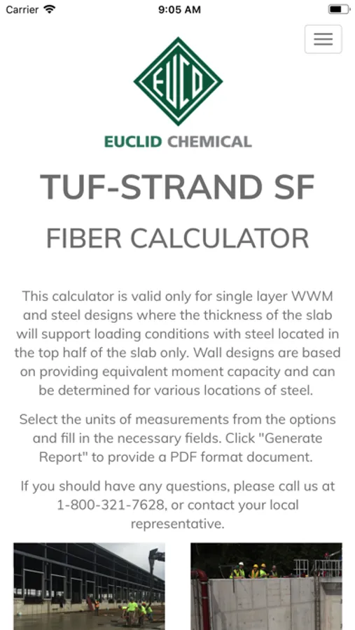 The Euco Fiber Calc App allows concrete producers, engineers and contractors to quickly calculate dosages of Euclid's TUF-STRAND SF macro-fiber to replace single layer rebar and wire mesh in floors and walls for temperature and shrinkage crack control.