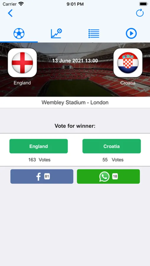 Added push notifications! Do you wish to receive push notifications for a match? You will receive a notification when either team score during the match!