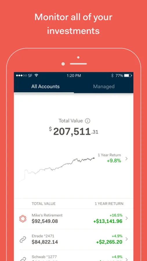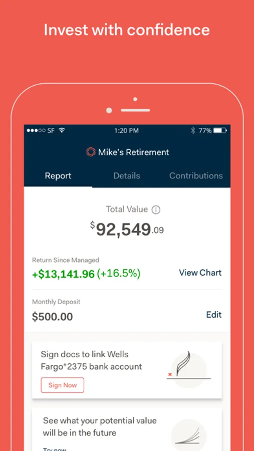Rest easy knowing your financial information is encrypted and protected using bank-level security. You can access your account with TouchID or a secure PIN. SigFig is an SEC registered investment advisor and a member of SIPC***.