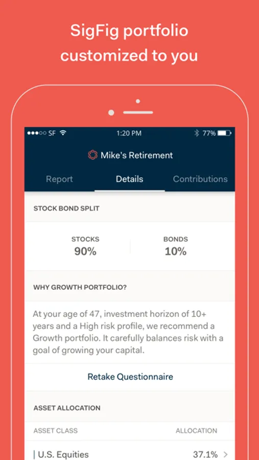 Everyone is unique. Your investment plan should be too. With SigFig, it’s easy to build a personalized plan that takes into account your needs, timeline, and tolerance for risk. Managed for a fraction of the cost of traditional advisors, it’s designed to help keep you on course toward a more secure future.