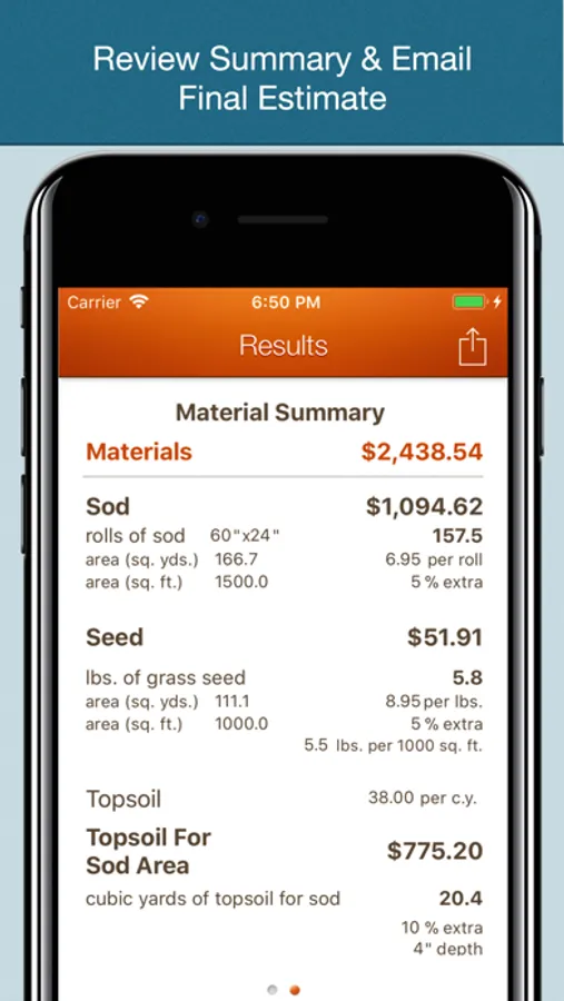 Our app also allows for extra. This is an important feature. Sod is sold by the roll, based on the area to be covered. An allowance, or extra, needs to be considered for waste, irregular shapes, and installation overlap. The same is true of grass seed. There is a requirement for dead seed heads, poor germination rates etc. The ability to include extra is a useful estimating procedure. Our app explains how to use this feature clearly.
