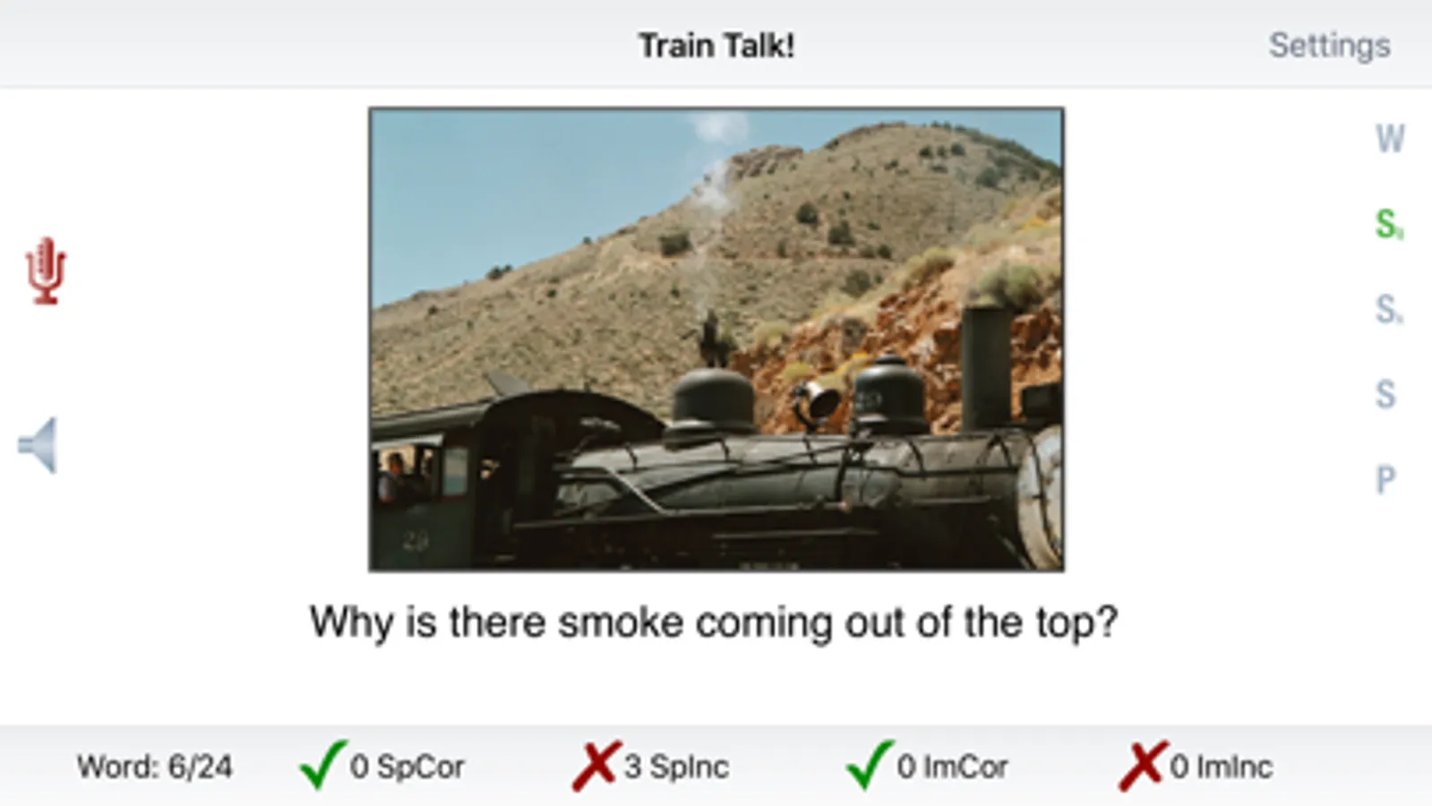 Train Talk is for children who love to talk about trains. This app helps direct that conversation to learn to ask and answer WH questions. Here are 128 pictures with question prompts and sample answers to encourage turn taking, spontaneous speech, conversational skills, and auditory comprehension. Who knew Train Talk could be so much fun!