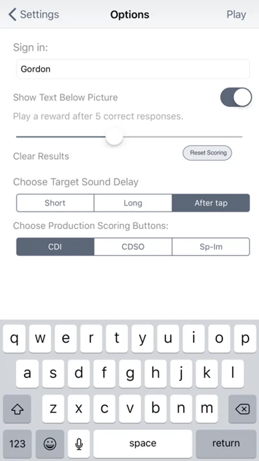 A clear speech model is presented for the child to imitate and they can record and play back their own speech. The clinician can choose from three scoring methods. 1. Score each response as correct, distorted or incorrect. 2. Score responses as correct, distorted, substituted, or omitted. 3. Score productions based on whether they are spontaneously correct/incorrect or imitatively correct/incorrect.