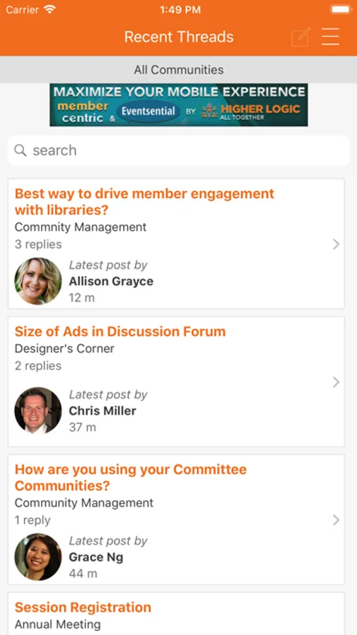 MemberCentric for Higher Logic’s Connected Community is your mobile app to connect and collaborate with peers, participate in communities of interest, and access up-to-date content and news from your association.