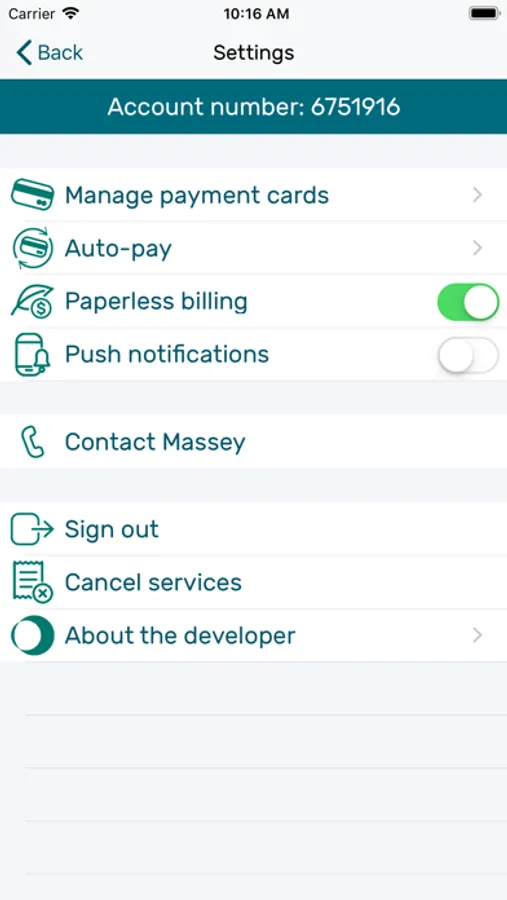 The My Massey App allows customers to conveniently manage their account from their mobile device. Using the My Massey App, you can: