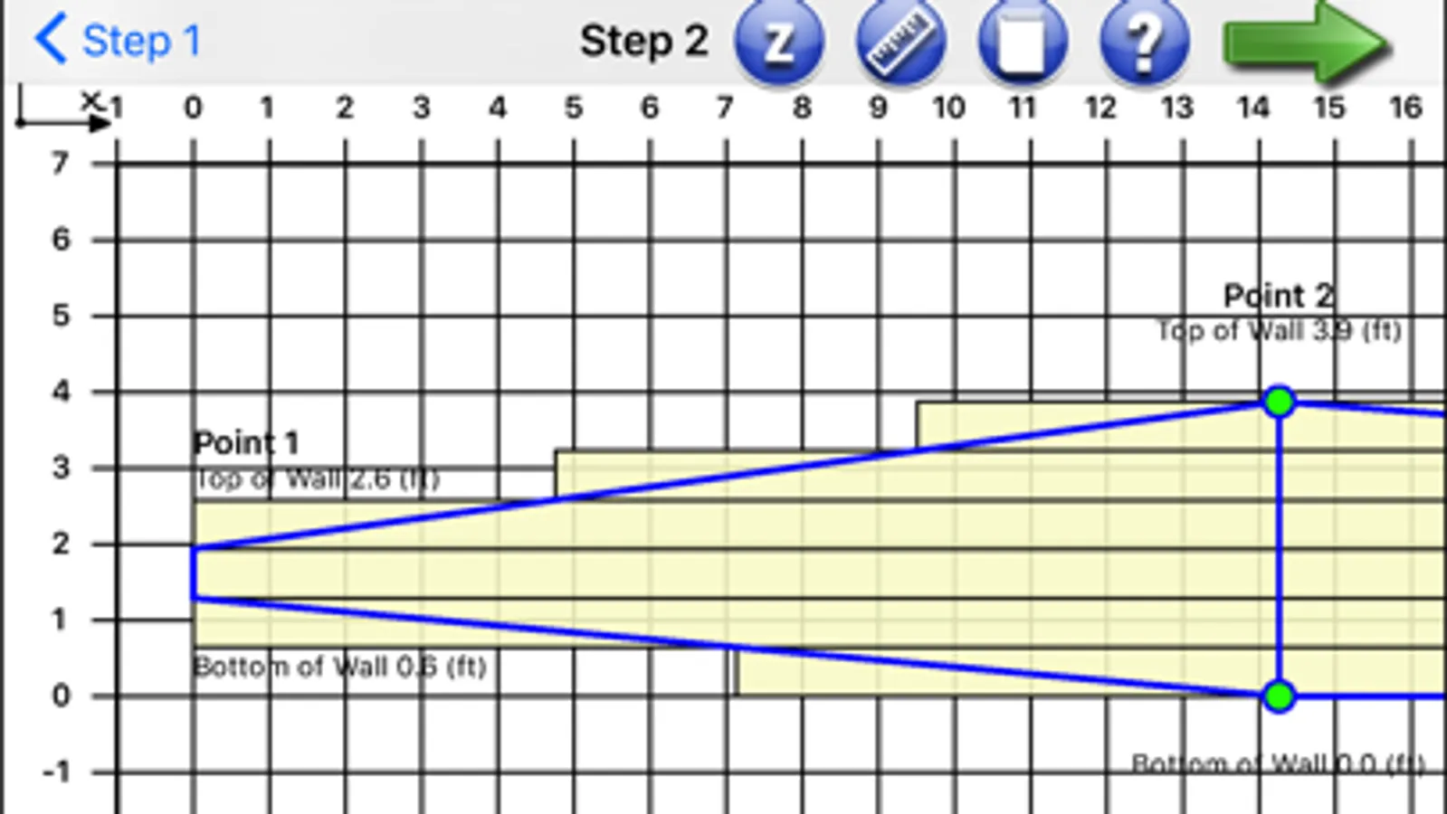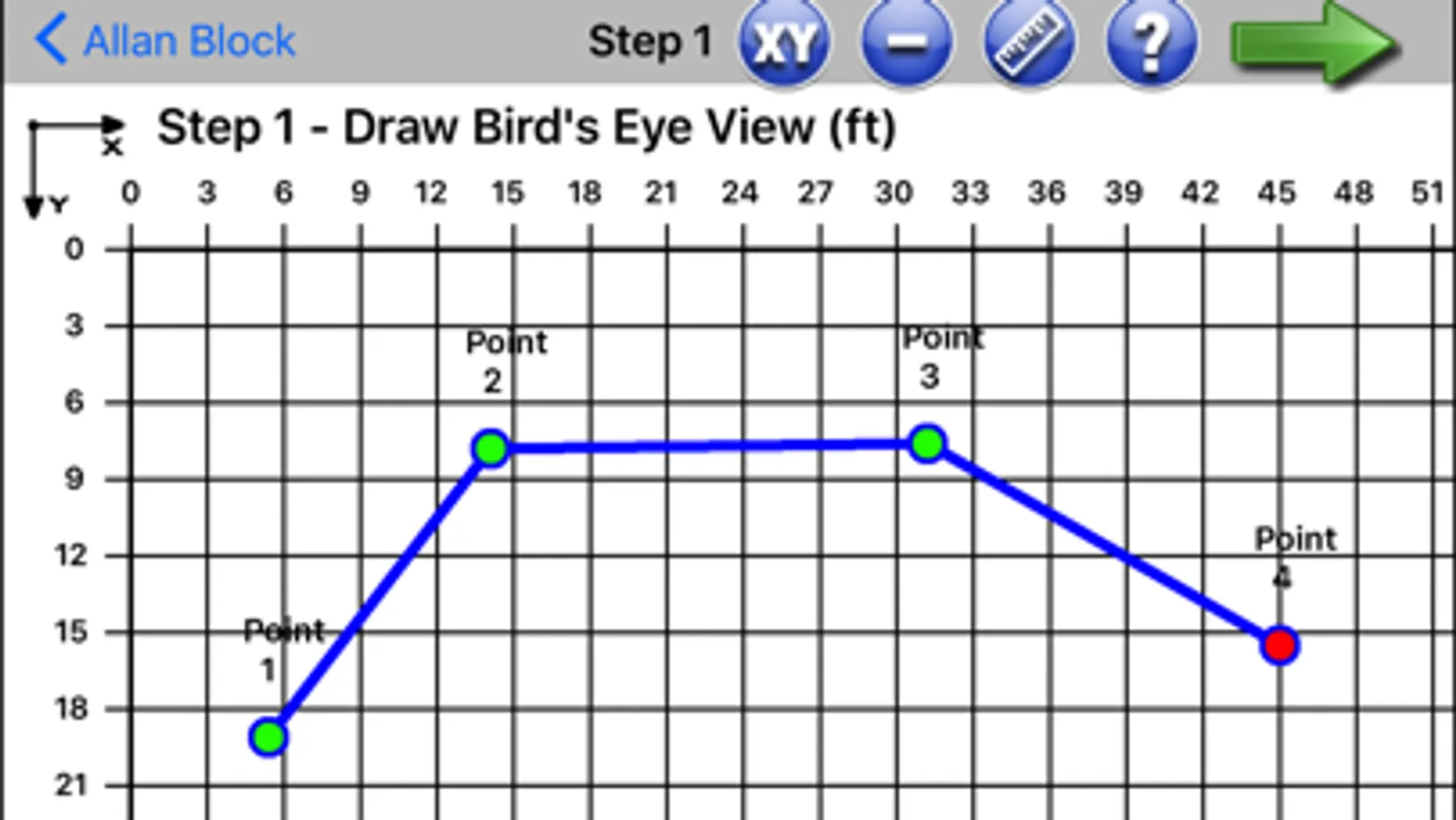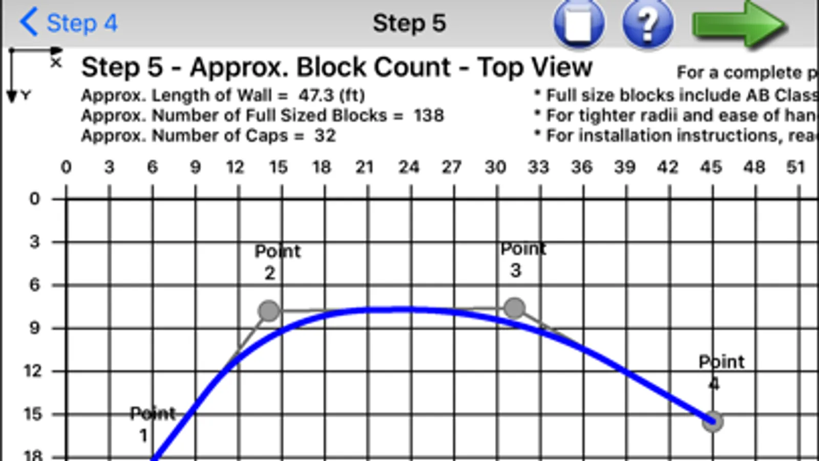 Use the simple screens to enter information about your project for height, length, soil type and then choose a condition that represents your yard. As an option you can enter in exact X, Y and Z coordinates of your wall to adjust the projects location and height information for more exact estimates. Entering in this basic information will give you a rough estimate of the blocks you will need in an easy to read format.