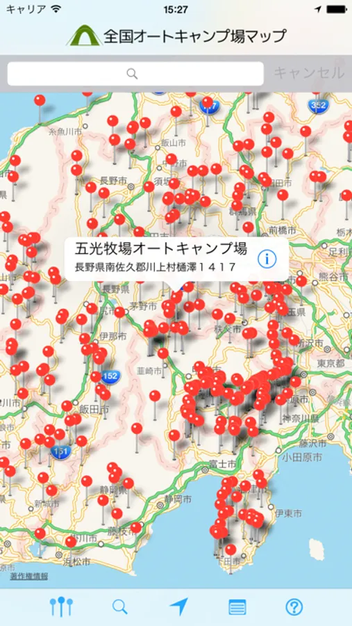 キャンピングカーでの利用や車中泊キャンプなどオートキャンプに適したキャンプ場マップアプリです。