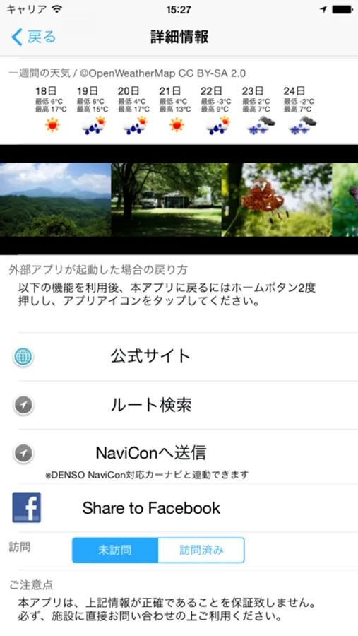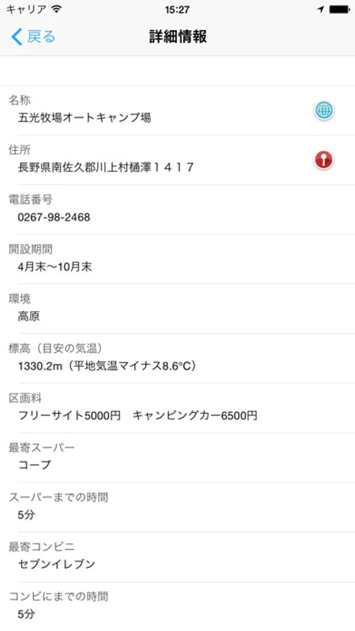また表示したオートキャンプ場までのルート案内等も簡単に行う事が出来ます。