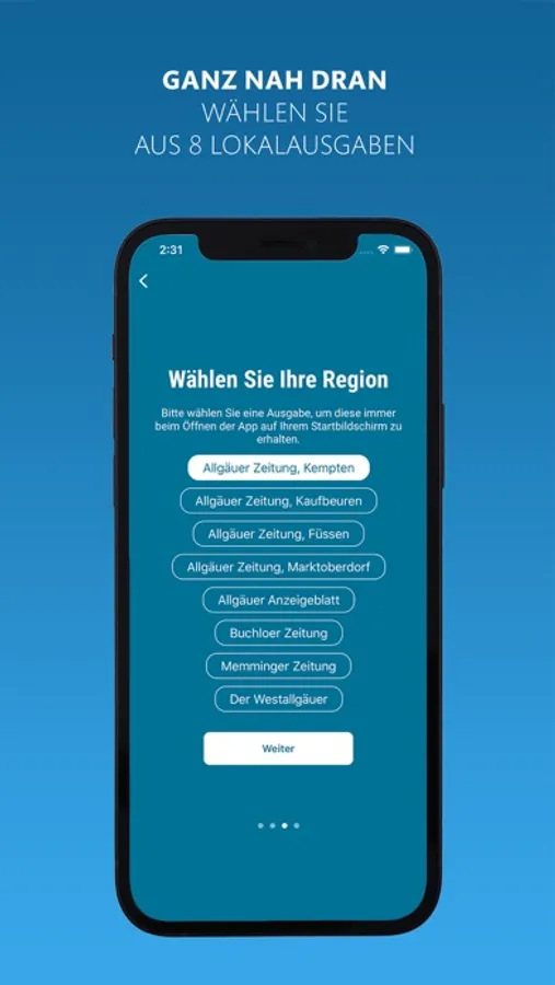 Mit der App der Allgäuer Zeitung und ihren Lokalausgaben erhalten Sie Zugriff auf Ihre favorisierte Ausgabe von Montag bis Samstag bereits ab 4 Uhr in der Früh.