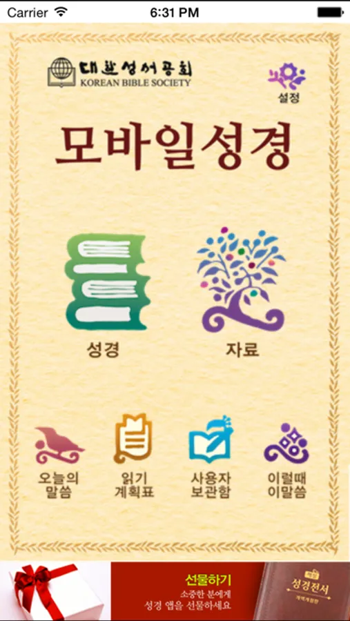 대한성서공회가 개발한 ‘대한성서공회 모바일성경’은, 성경 본문에 대한 해설과, 성경 이해에 도움이 되는 자료를 제공하여 성경 읽기 및 성경 공부, 묵상에 유용한 도구가 될 것입니다.