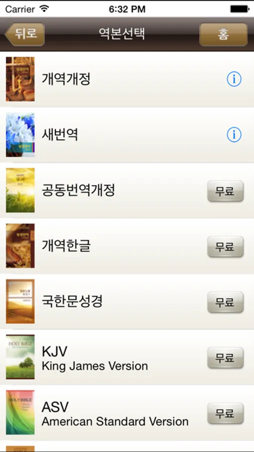 성경전서 개역개정판, 공동번역성서 개정판, 성경전서 새번역, 성경전서 개역한글판, 성경전서 국한문(한글병기) 국내 최초로 국한문 성경을 모바일에 탑재.