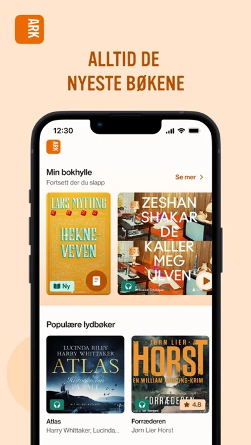 Bøker kjøpt i ARK sin nettbutikk kan du lese og lytte til i appen.