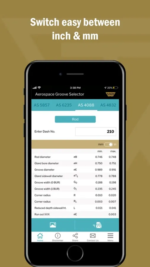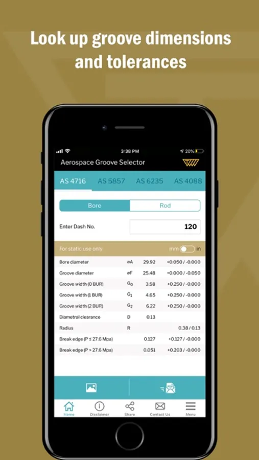 This app covers five of the most important SAE Aerospace groove standards for hydraulic systems, AS4716 Rev B, AS5857 Rev A, AS6235 Rev A, AS4088 Rev E and AS4832 Rev A. You can easily find groove sizes and determine if grooves are suitable for a dynamic and/or static seal. Available in Metric and Inch, based on standard Dash numbers.