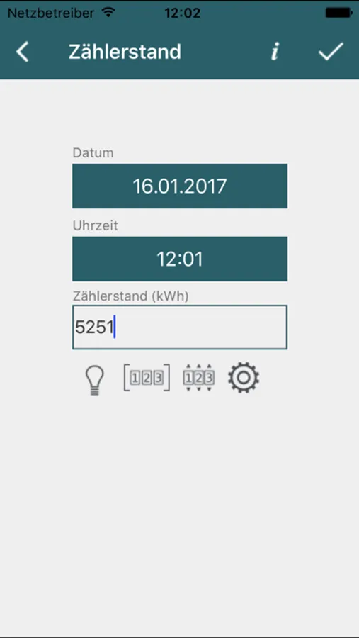 + Taschenlampe bei der Eingabe von Zählerständen aktivieren (abhängig vom Gerät)