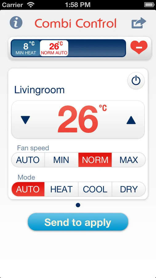 With CombiControl controller you can have full control over your Toshiba air-to-air heat pump. It enables you to easily adjust the mode, room temperature and fan speed of a heat pump. Combi Control can also inform you about low room temperature, power failures and service intervals.