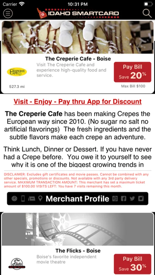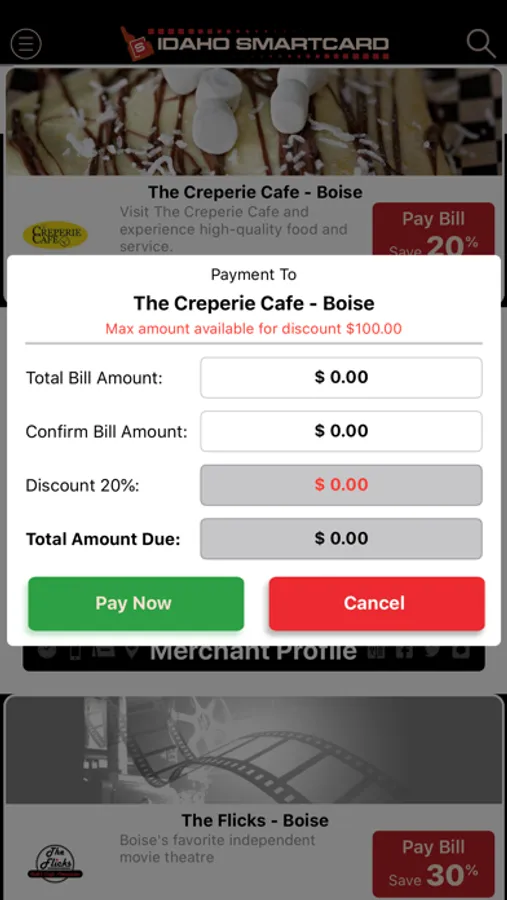 Welcome to the Idaho Smartcard! We’ve taken the Boise SmartCard to the next level by opening it up to the entire Treasure Valley. Enjoy savings on entertainment, services and dining in Boise, Meridian, Kuna, Caldwell, Nampa and Emmett. Download today and save up to 40%!