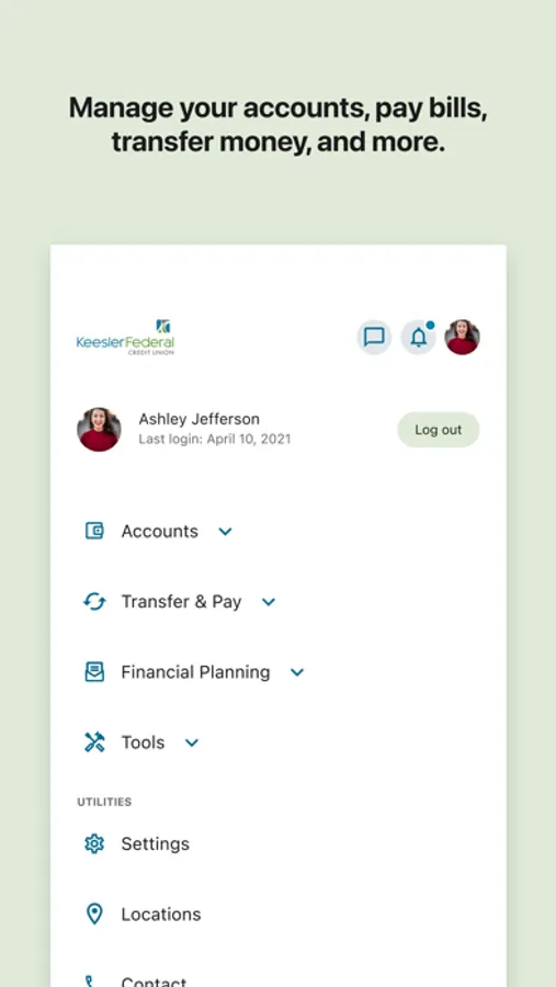 All Keesler Federal members may use our Mobile Application for no charge. Your wireless provider’s messaging and data rates may apply.