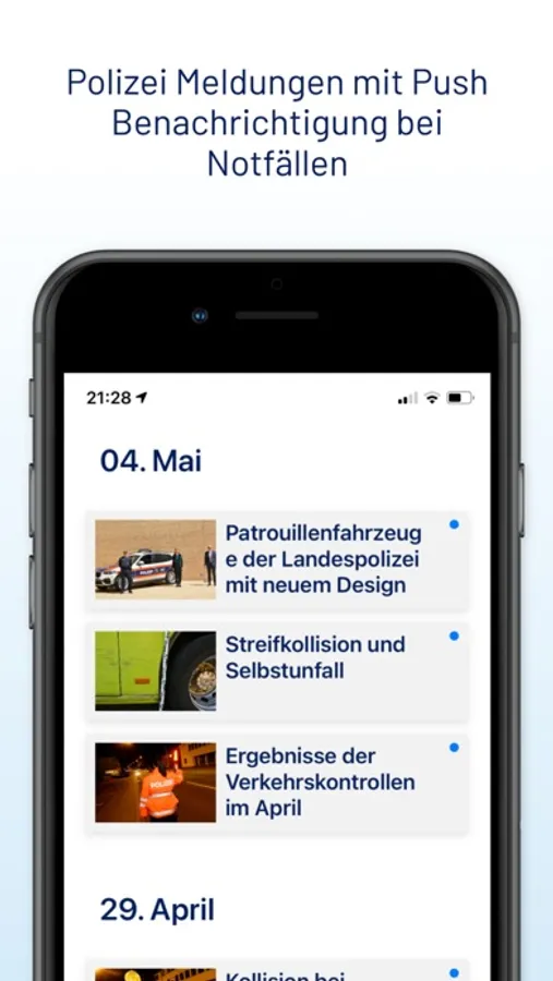 - Durch die neuesten Pressemitteilungen und Informationen inkl. Fotos ist man über aktuelle, polizeirelevante Ereignisse sofort informiert.
