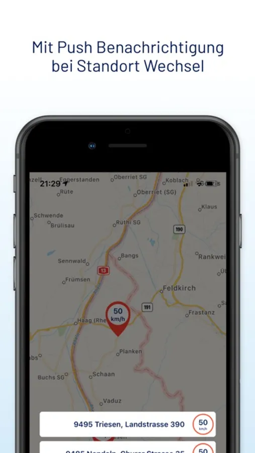 - Standortwechsel der Geschwindigkeitsmessanlage können als Push-Mitteilung automatisch empfangen werden. (Kann deaktiviert werden.)