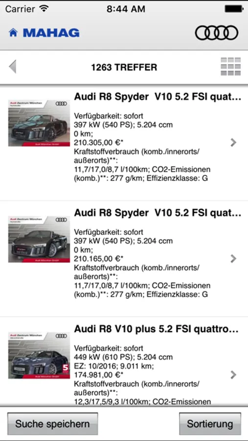 Durch die intuitive Bedienung ist es ein Leichtes, neue wie gebrauchte Fahrzeuge zu suchen. Sie finden alle Informationen von Ausstattung über technische Daten bis hin zu Fahrzeugbildern. Haben Sie Ihr Wunschauto gefunden, können Sie es in der Favoriten-Garage "parken". Natürlich ist es dort jederzeit wieder abrufbar.