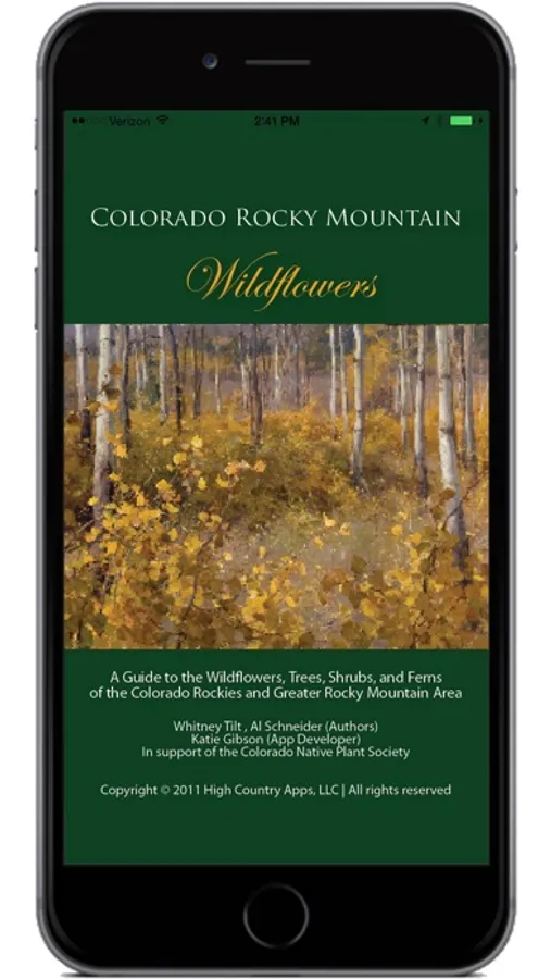 The app covers the Colorado Rocky Mountains from the foothills to the alpine zone and although we show you a few plants found exclusively in Colorado, the vast majority of the plants shown can also be found through the Rockies of Montana, Wyoming, and New Mexico.