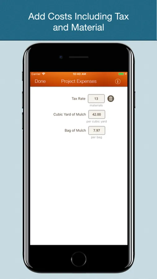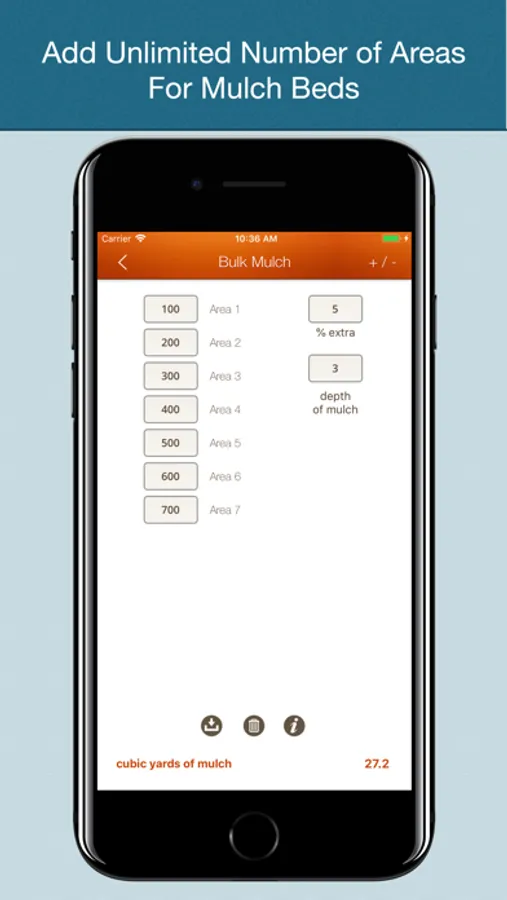 Our app also allows for extra. This is an important feature. Mulch, is sold by volume and is calculated in a uncompacted loose form. When you use it on your project, you'll most certainly want to pack it down some. The ability to include extra is a useful estimating procedure. Our app explains how to use this feature clearly.