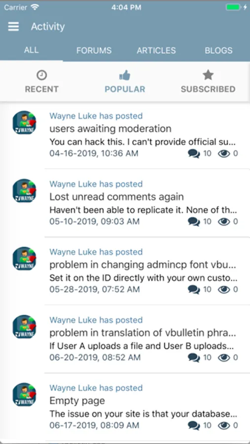 - Read and post to vBulletin blogs and articles