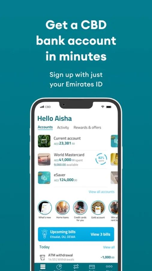Manage your banking wherever you are with the No. 1 Bank in the UAE. Sign up in minutes with just your Emirates ID and get a Current Account, Credit Card, Quick Loan, Mortgage Pre-Approval and more in the App.