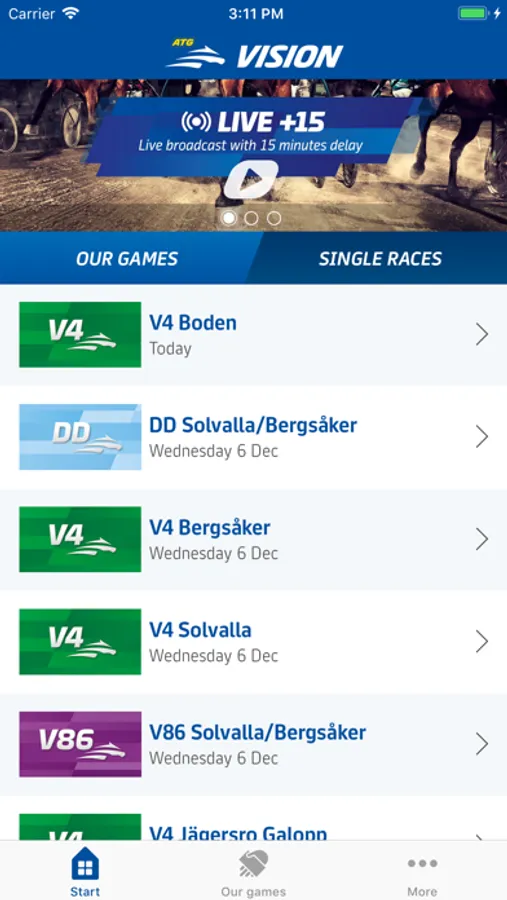 ATG Vision is a free app to download with on-demand service with media, replays and warmups of the main races of Swedish Horse Racing the past week. Results are displayed for each race. New content is added every day and delivers a great horse racing experience at your fingertips.
