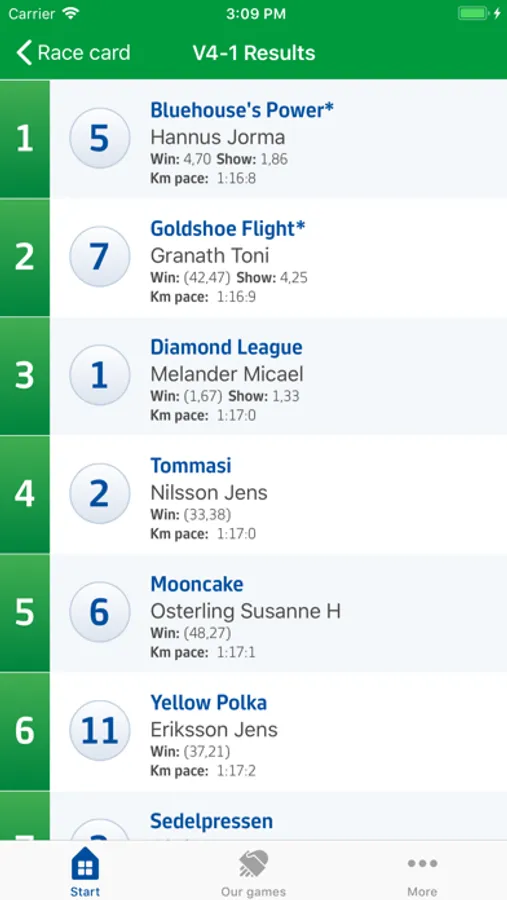 - Video replays of main races every day from events with V75, GS75,V86, V65, V64, and V4.