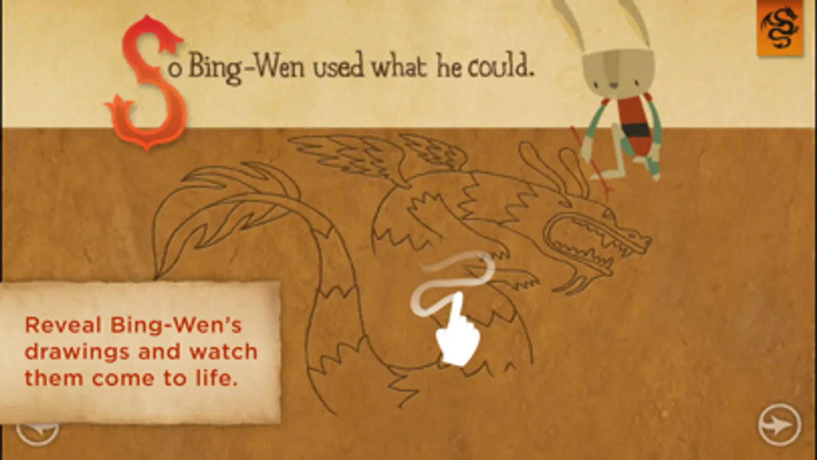 "With its distinctive look, a great drawing element that's actually appropriate to the story and a moral that values cleverness over power, Bing-Wen's app is as rare and magical as the dragons he loves to paint." —Kirkus Reviews