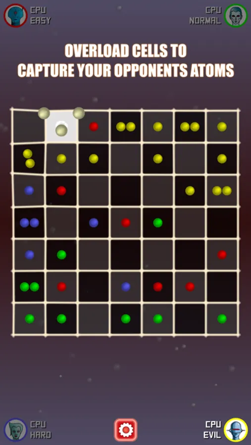 Place your atoms on the grid but - move carefully! - they will overload and explode if too many are placed together! Strategically balance risk and reward to capture your opponents' Atoms in a chain reaction explosion while protecting your own from counter attack.