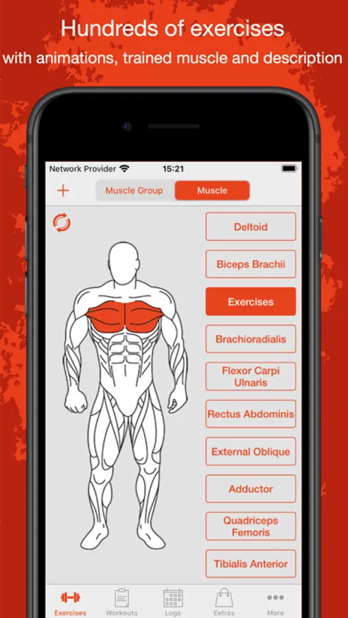 - Create new exercises with muscle group, description, primary/secondary muscle and your custom image.