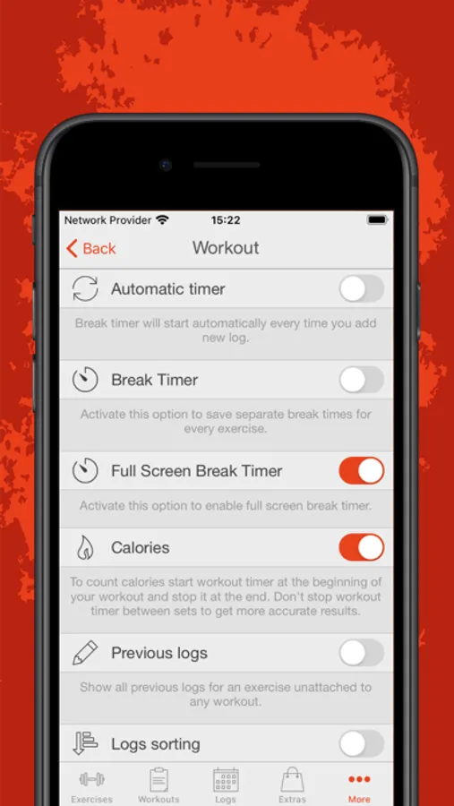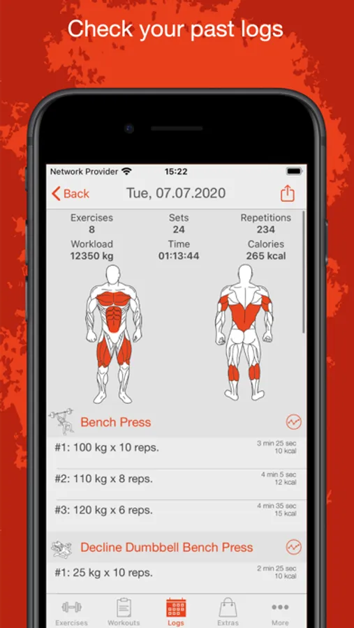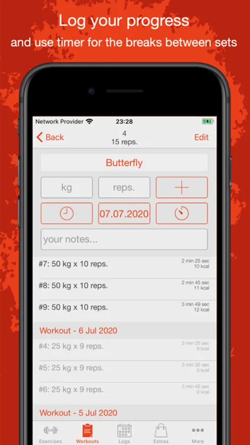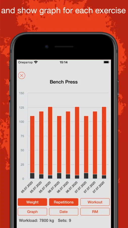 - Graph to visualize your log data for each exercise (including workload and RM calculator)