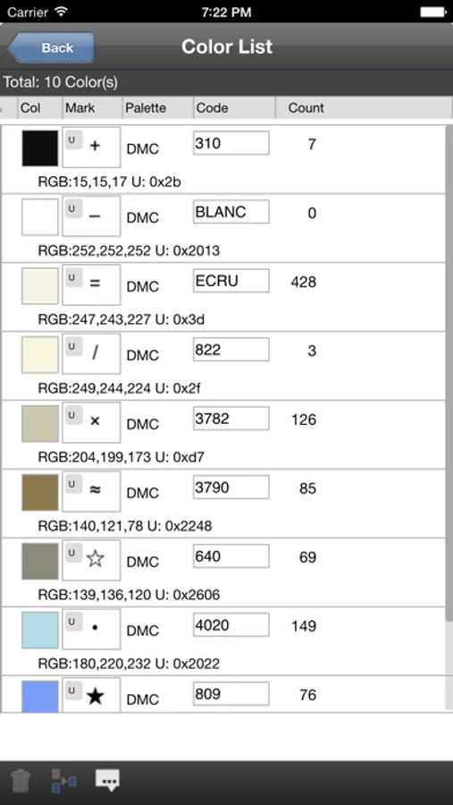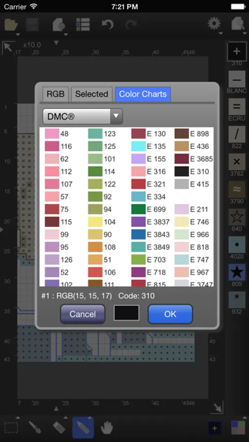 - Generic color palette and Color Charts (palette) for: DMC(R), DFT, COSMO, Delica, Toho Best, Perler(R) Beads