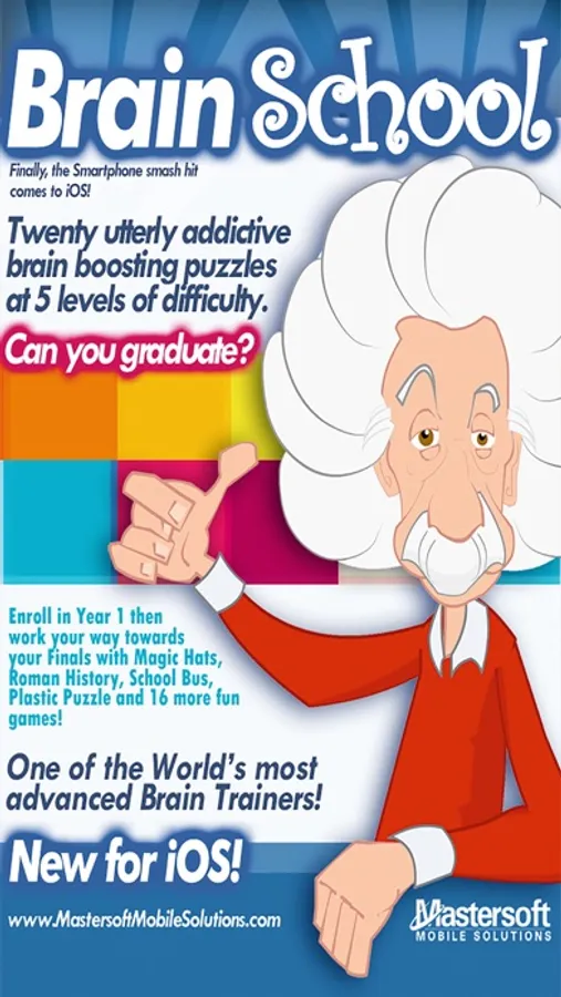 Twenty completely different brain training games and over 100 levels of tricky puzzle mayhem. Includes plastic puzzle, music lessons, roman history, magic hats, shape maths and 15 more! Are you clever and smart enough to graduate?