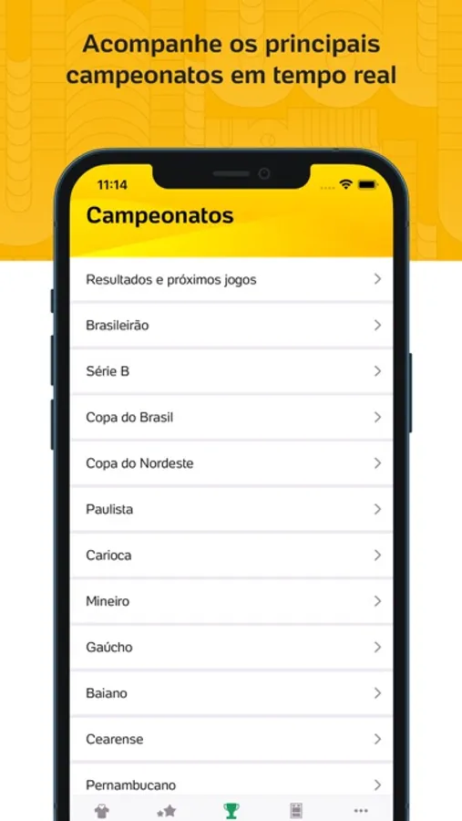 No app você encontra a cobertura completa dos principais campeonatos do país - Brasileirão Série A, Série B, Série C, Copa do Brasil, Estaduais e a Primeira Liga. A Taça Libertadores, o Mundial de Clubes e a Copa Sul-Americana também estão presentes. Para os amantes do futebol do Velho Continente, o app traz os campeonatos Espanhol, Inglês, Francês, Alemão, Italiano, a Liga dos Campeões e as copas e supercopas de cada país. Além disso, você também pode filtrar os torneios por fases.
