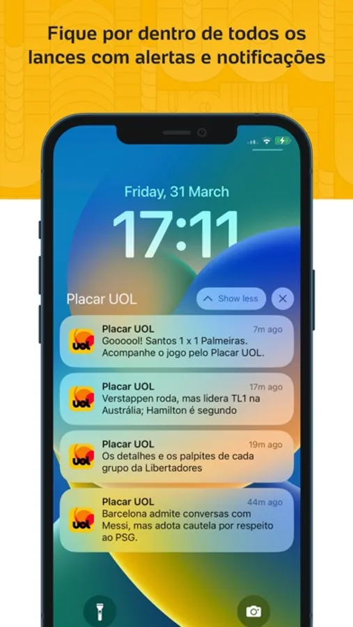 Favorite até dez times - nacionais e internacionais - e receba alertas com as notícias mais importantes de cada equipe, tudo com a credibilidade do UOL. Para ficar atento aos jogos, o Placar envia notificações de início, gols e fim das partidas.