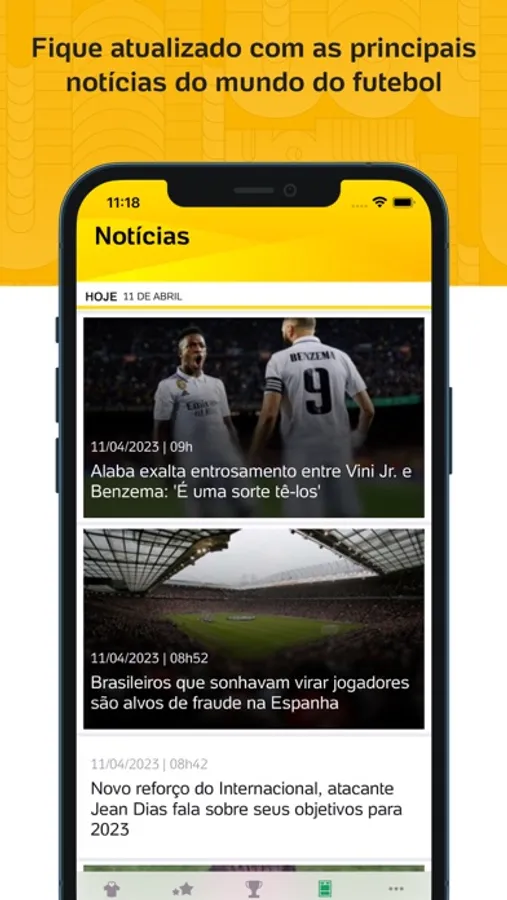 É o app que você procurava, bonito e fácil de usar, para ficar em cima do lance no esporte mais popular do mundo!