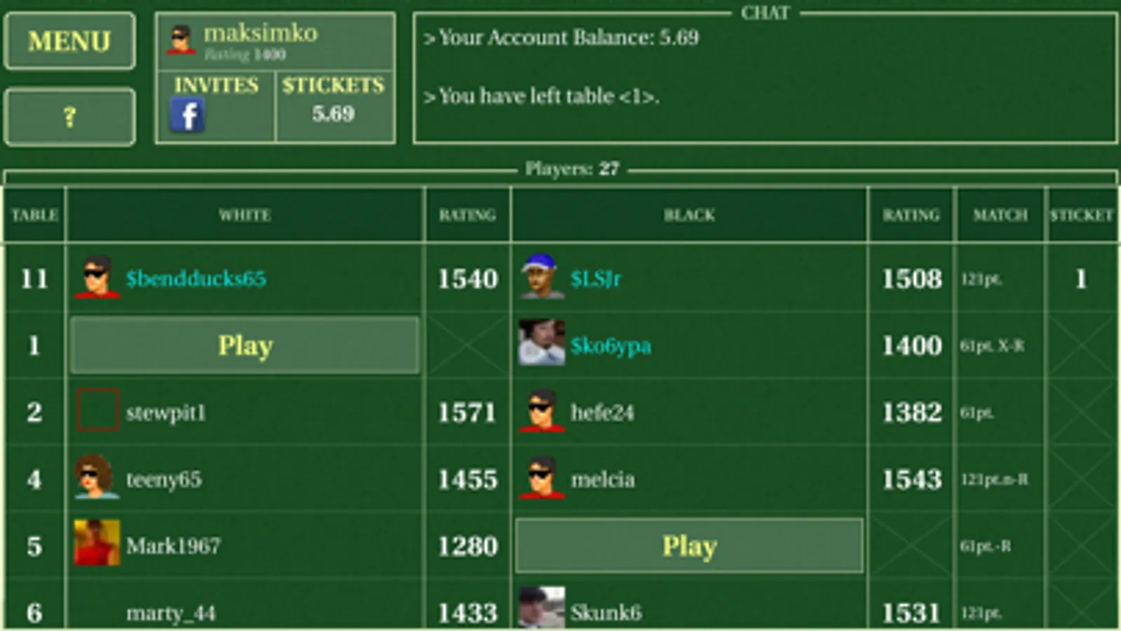 Play cribbage and chat online with real players - hundreds of players from all over the world at all hours!