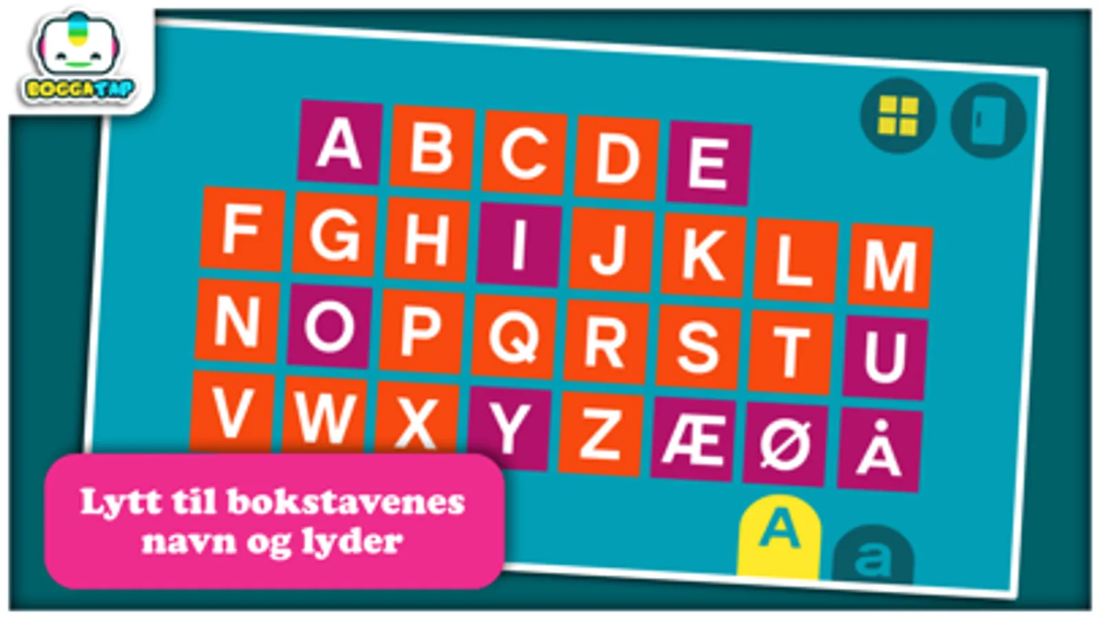 Bogga Alfabet er en norsk app fra Boggatap og passer barn fra 2 år og oppover.