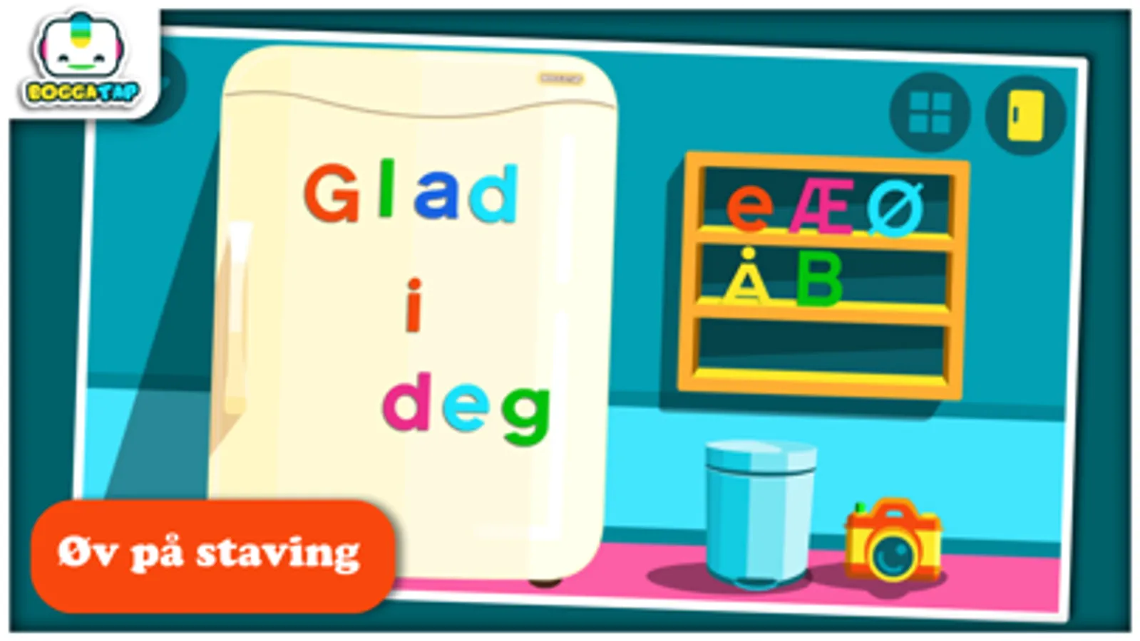 Med denne norskproduserte appen kan du la barna utforske det norske alfabetet gjennom å fargelegge store og små bokstaver som så forvandles til kjøleskapsmagneter! Sammen kan dere lytte til både bokstavnavn og bokstavlyd. Bruk bokstavene du lager til å stable enkle ord på kjøleskapet, for så å ta bilde av kunstverket! Morsom og enkel, med fokus på det pedagogiske - uten forstyrrende elementer som reklame.