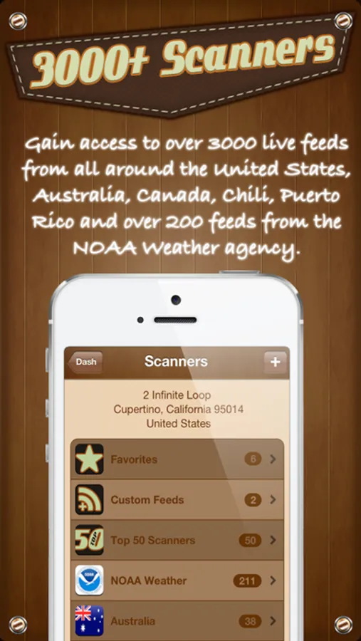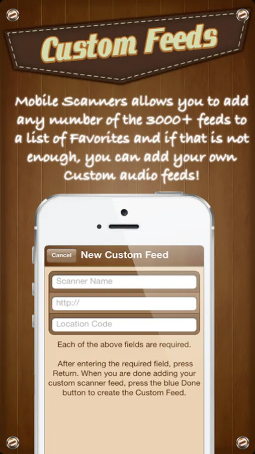 • Mobile Scanners allows you to add any number of these feeds to a list of Favorites and if more than 3000 feeds is not enough, you can add your own Custom audio feeds!