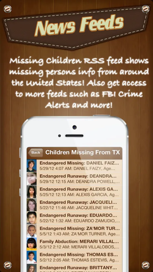 • Missing Children Lists children from all around the U.S. This feed is categorized and always up to date.